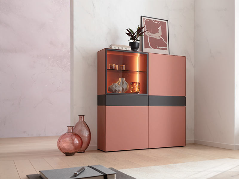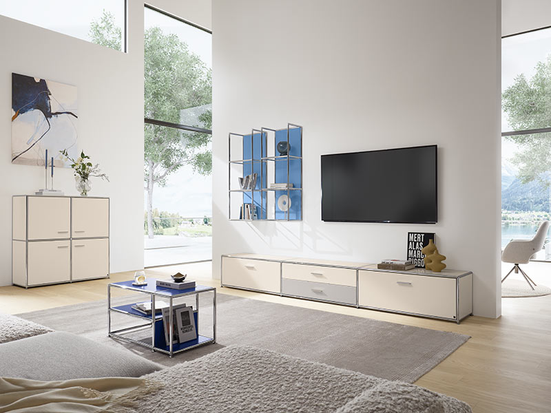 Das Produktportfolio der Kettnaker Möbelmanufaktur zeichnet sich durch eine hohe Materialvielfalt aus. Sie reicht von edlen Holzfurnieren über Stahl, Glas, Aluminium und Keramik bis zu fast jeder Lackfarbe.